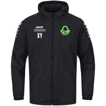 Die JAKO Allwetterjacke Team 2.0 besteht aus 100 % Polyester. Ein hochfunktionelles, wasserabweisendes Obermaterial mit PU-Beschichtung hält dich bei jedem Wetter trocken. Die Kapuze, der verlängerte Rücken und die elastische Binding schützen dich vor Wind und Regen. In den integrierten Seitentaschen mit Reißverschluss kannst Du deine Wertsachen verstauen.